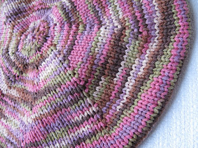 Yeah, it's the hat formerly known as the Beret of Badly Misbehaving Yarn. Just not my color. The pattern—One Day Beret by Kirsten Kapur—is perfect for that skein of variegated yarn that is making you want to barf because it pools like mad. The beret is knit from the center out, so it's easily sized down for kids.